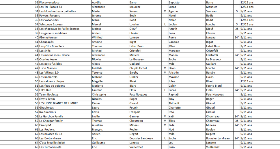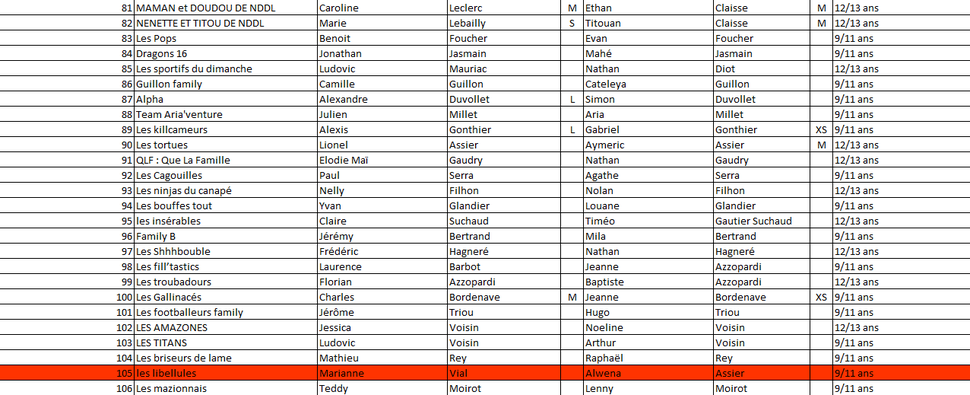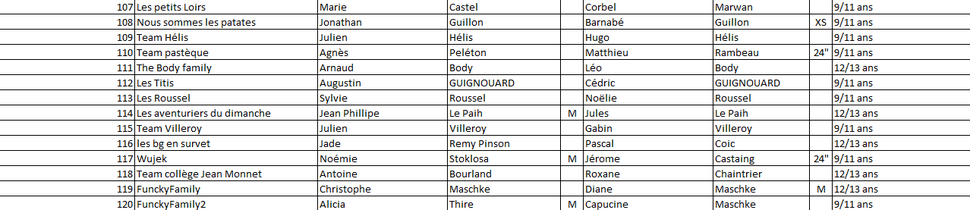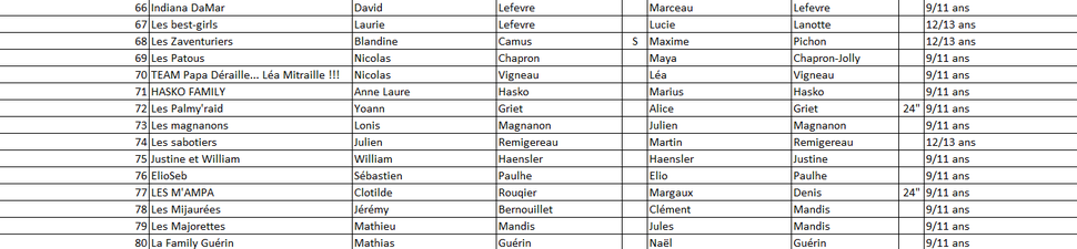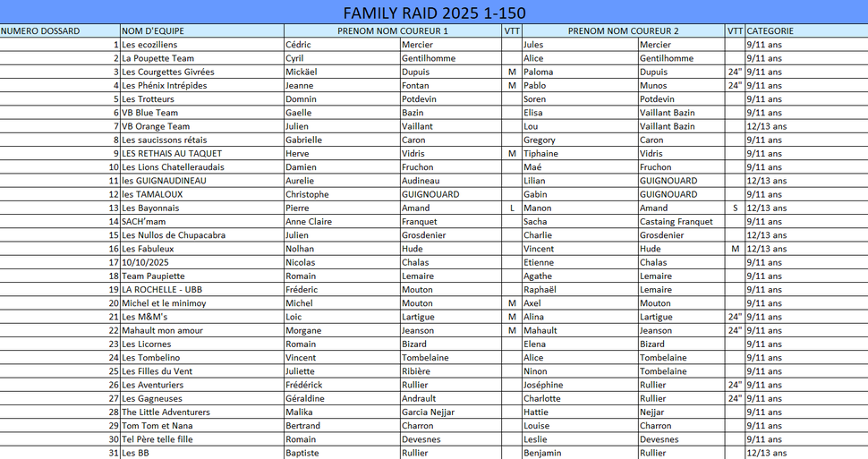 ÉQUIPES INCRITES AU FAMILY RAID LA PALMYRE #3